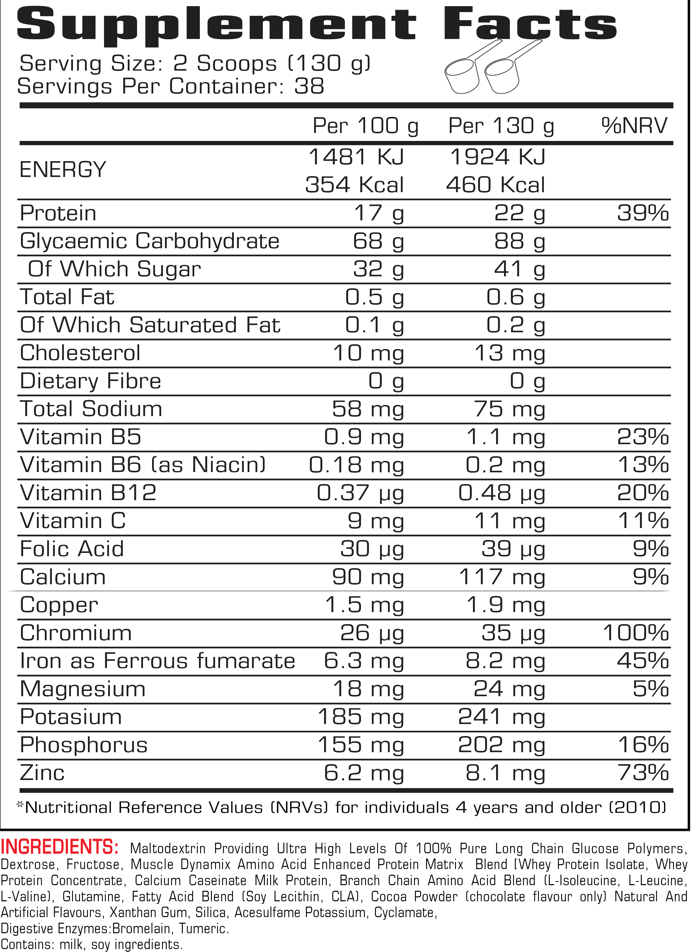 The nutritional contents of 8XXL allows the consistent consumption calories, energising carbs and muscle building protein.