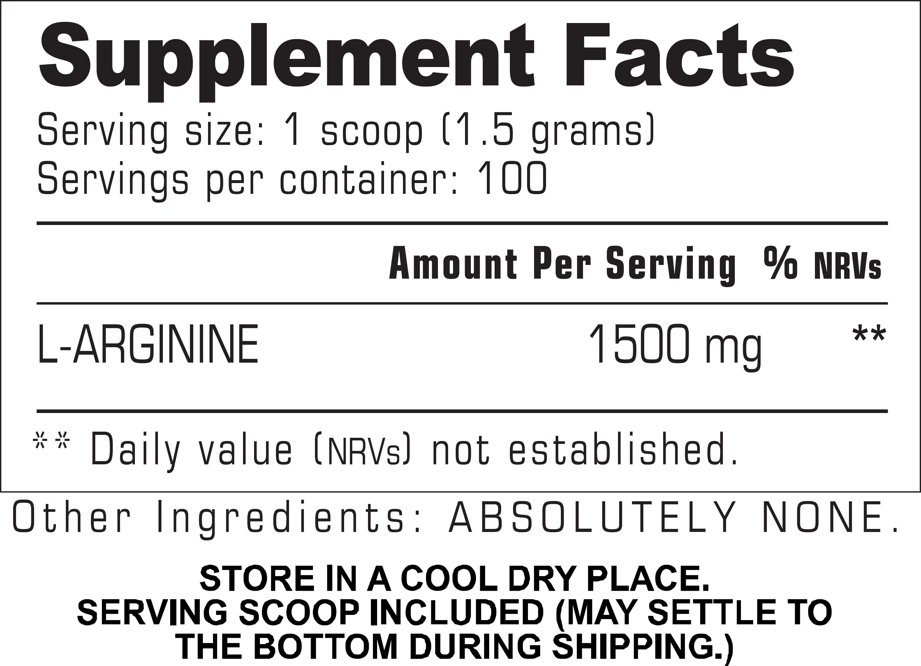With zero fillers, Flavors, or additives, this ultra-pure formula delivers 150g of pure L-Arginine, giving you 100 potent servings that help you train harder, recover faster, and look more vascular than ever.