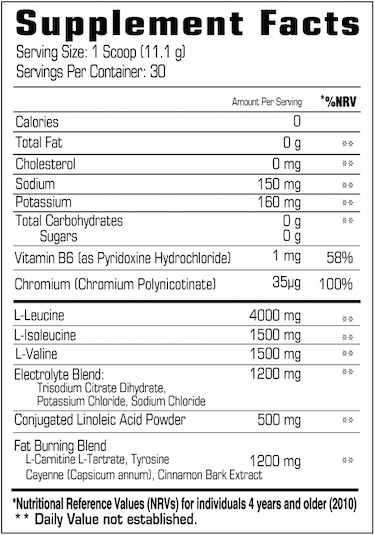 Burn BCAA contains 7 grams of branched-chain amino acids, hydrating electrolytes, and fat-burning ingredients (such as CLA, L-Carnitine and Cayenne).